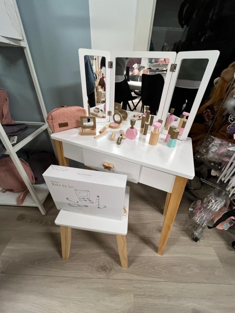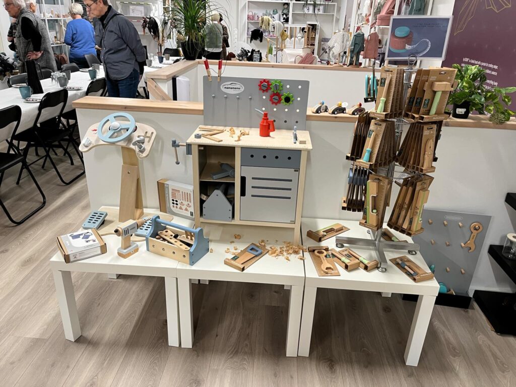 I deres showroom så vi alt fra bl.a. dukker, dukketøj, køkkenudstyr, mad i træ og kæpheste med tilhørende tilbehør som stald, forhindringer og seletøj.