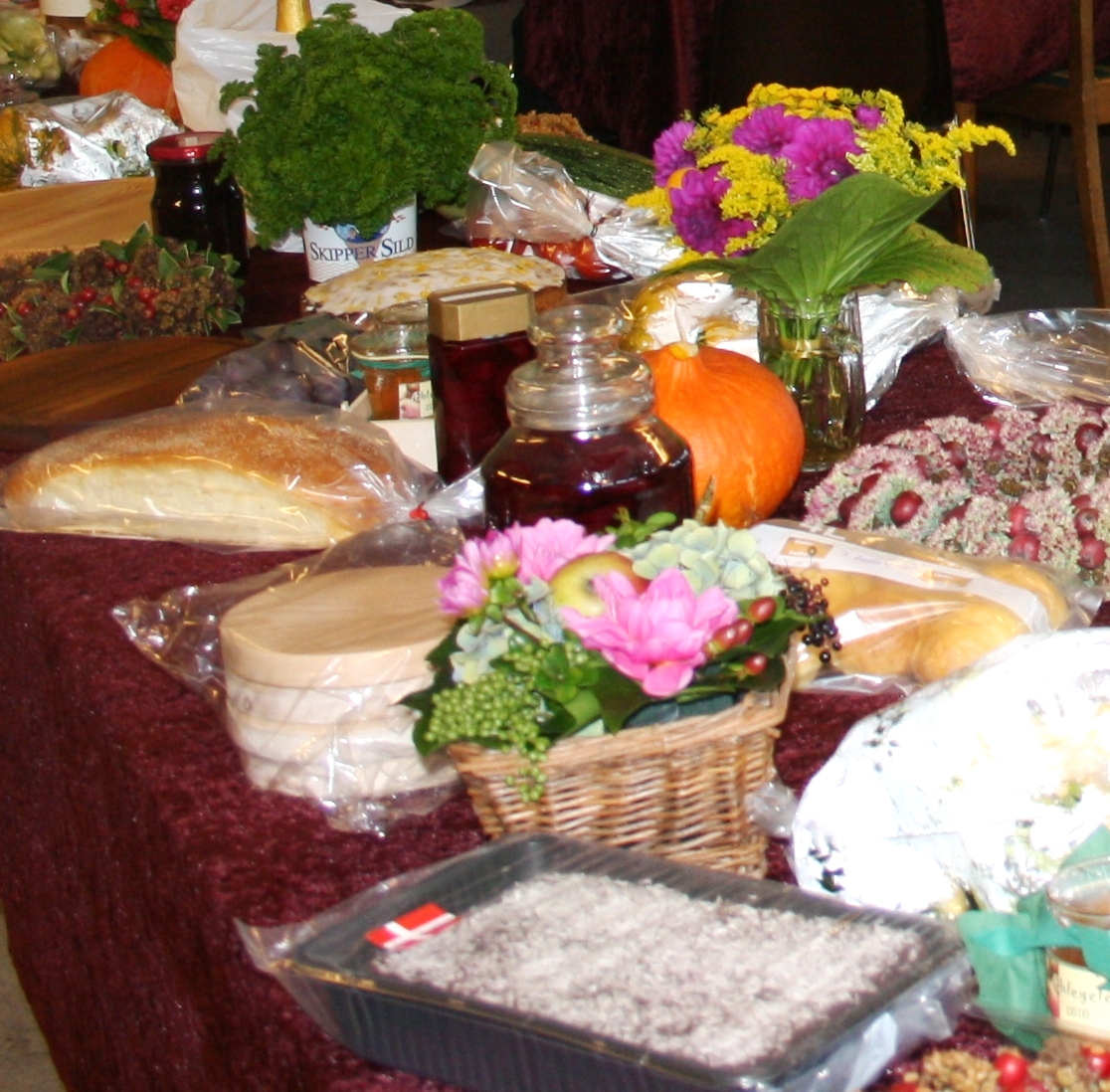 Hvis man vil bidrage med lidt af sin overflod fra have og hus, kan det afleveres i forsamlingshuset fra kl. 17, eller når man kommer. Stauder er også i år fravalgt.