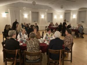Så blev året sat i gang i Ådum Kvindenetværk, da 43 kvinder var samlet fredag aften til lækker tapas, snak, hygge og underholdning. Til velkomsttalen opfordrede Tina Pontoppidan til at der blev hygget og minglet ved bordene, det blev hørt og efterlevet til fulde.
