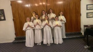 Derefter i gik alle over i Ådum Forsamlingshus hvor der var Luciaoptog inden vi kunne nyde det helt store kaffebord og amerikansk lotteri med en del sponsorerede gevinster.